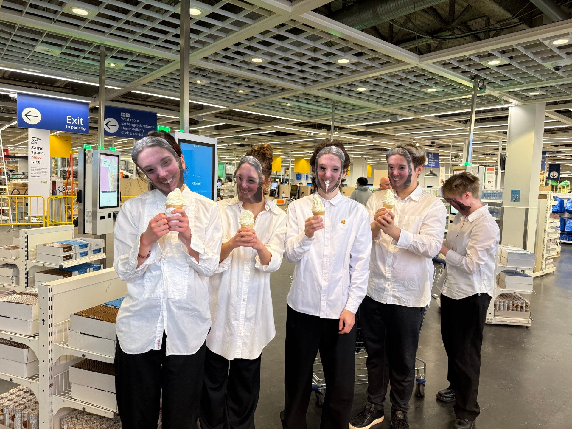 - We all have the repetition of the rubbing our stomach constantly as if we’re starving, and then we all flock to the ice cream, line up as the factory robot vibe waiting to get our IKEA signature ice creams one by one and eat it with a totally “uncanny Valley” moment and gestures.