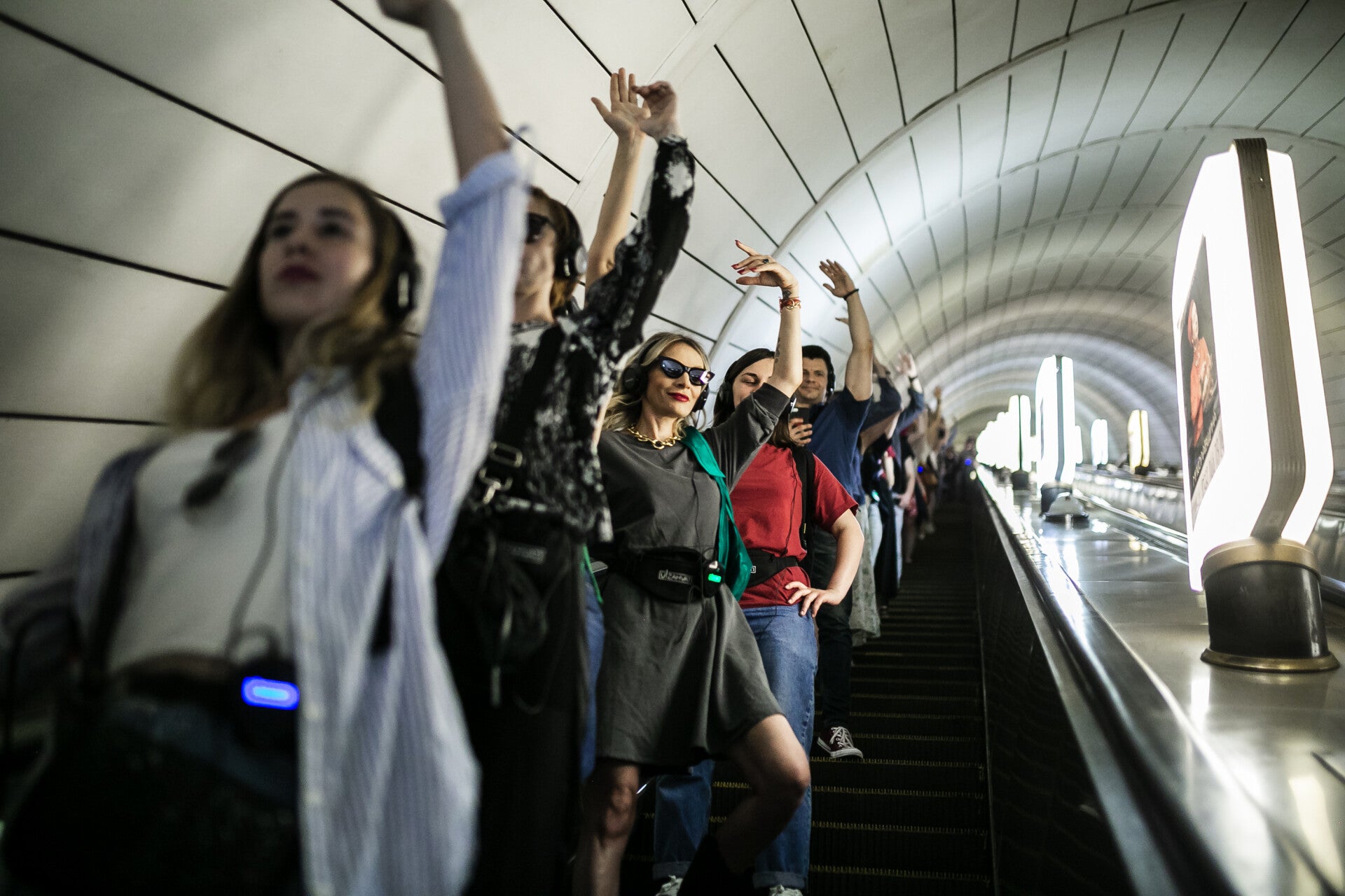 Our piece was inspired by a mix of sci-fi films, apocalypse narratives, and immersive performance structures. As we kept developing the work, I became especially interested in the relationship between time travel, public space, infection, surveillance, and guided audience movement. I wanted our performance to feel like the audience had stepped inside a system that was already in motion, where they were not just watching a story, but being moved through it. Some of the strongest inspirations for this project came from film and performance works that helped shape the visual world, the timeline logic, the infection theme, and the headphone-based structure of the piece.